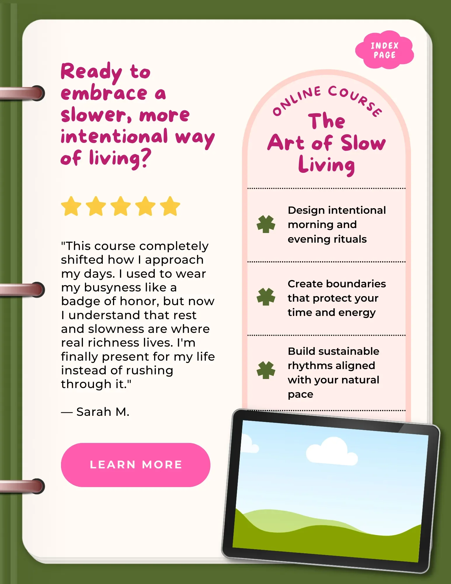 A branded workbook inside your course. A custom journal for your coaching clients. A seasonal planner for your membership. Adding stationery to an existing offer raises the perceived value, deepens the experience, and gives people something tangible to hold — without you building something new from scratch.