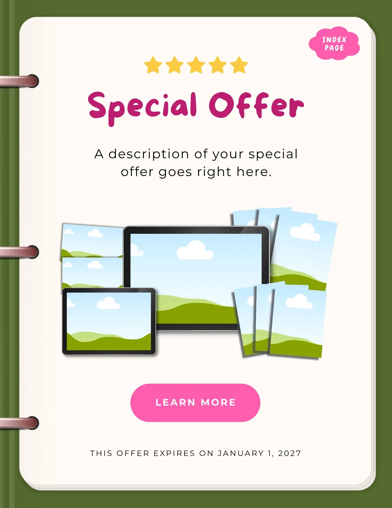 This template features an expanded selection of promo pages, a cleaner design, and a cute, editable cheetah pattern! 🐆