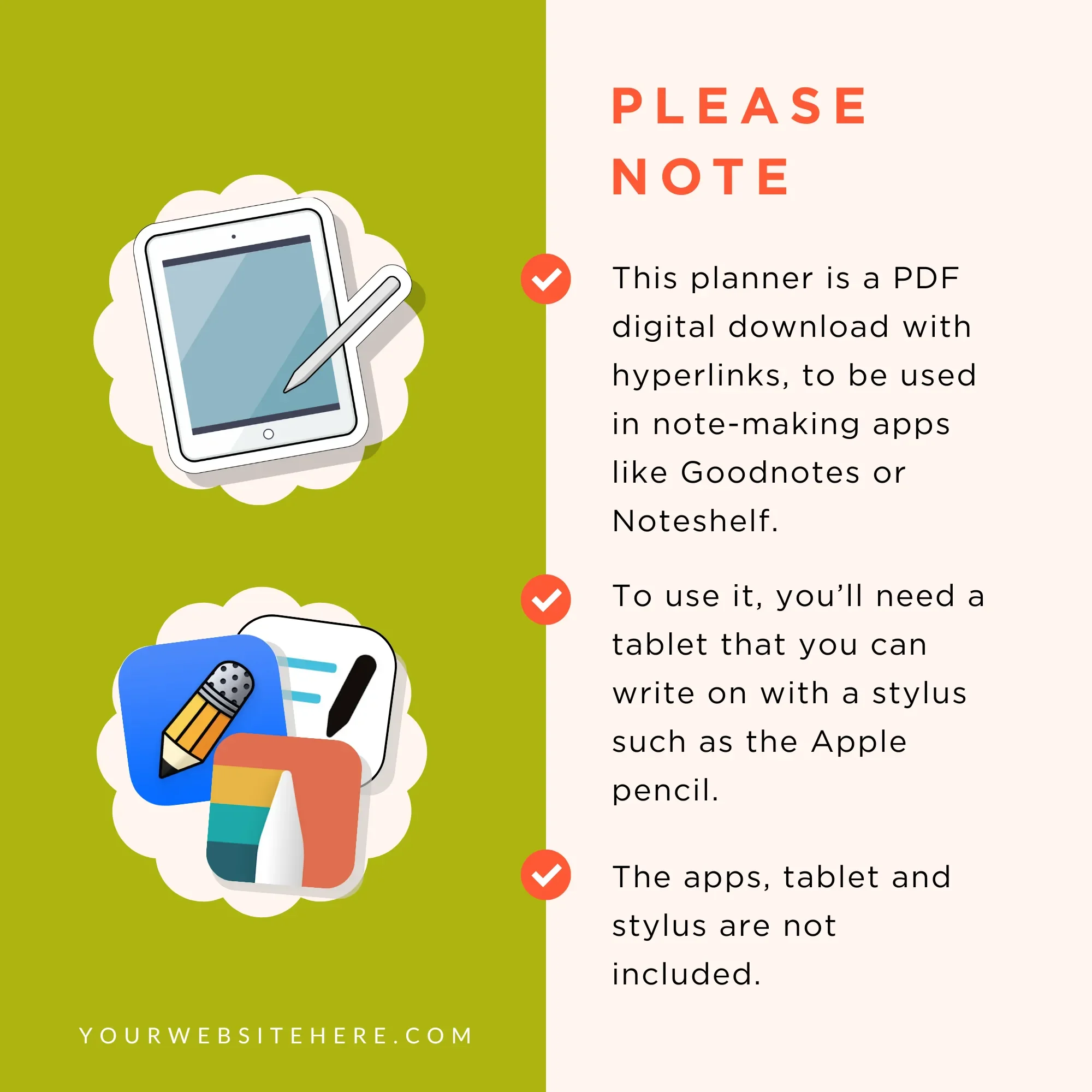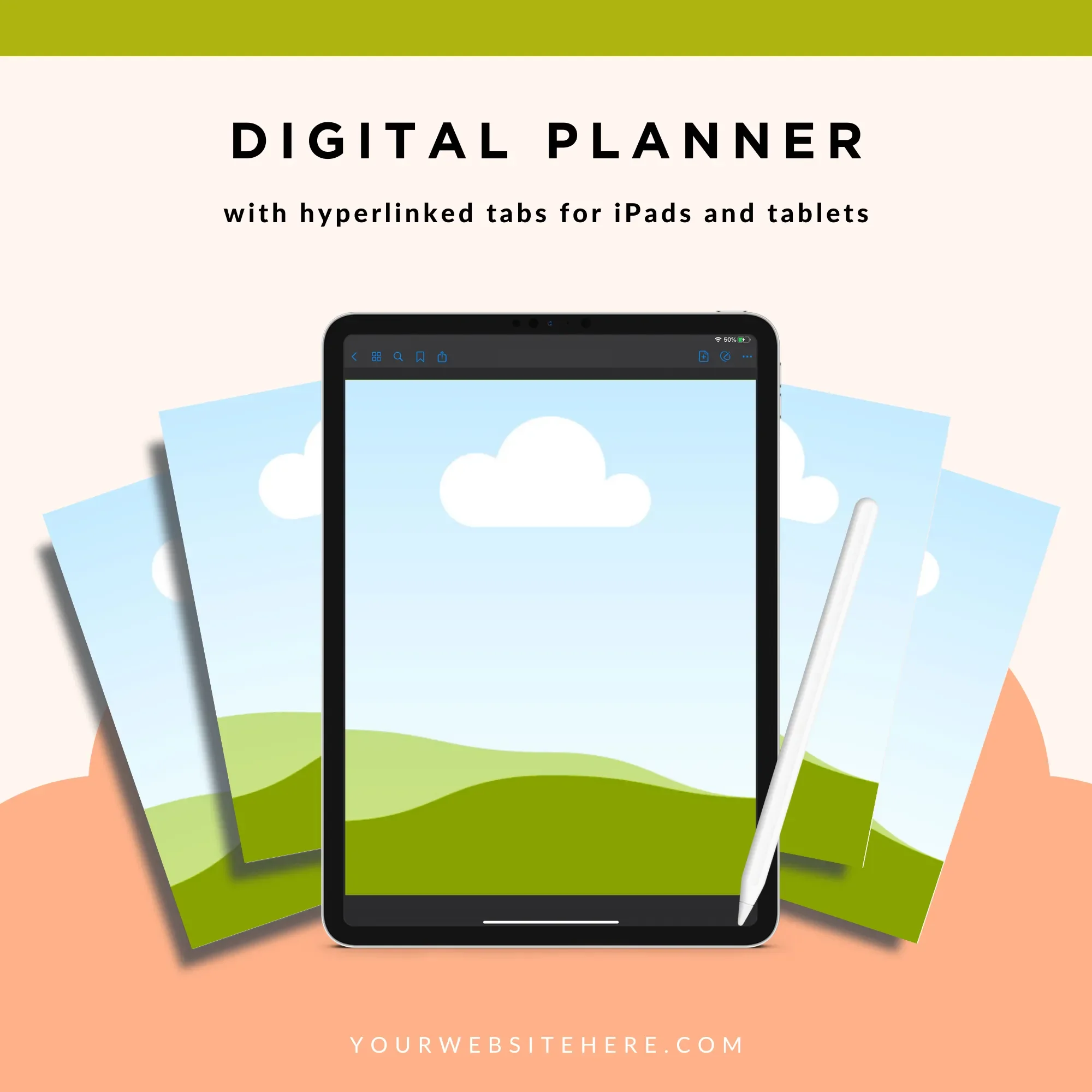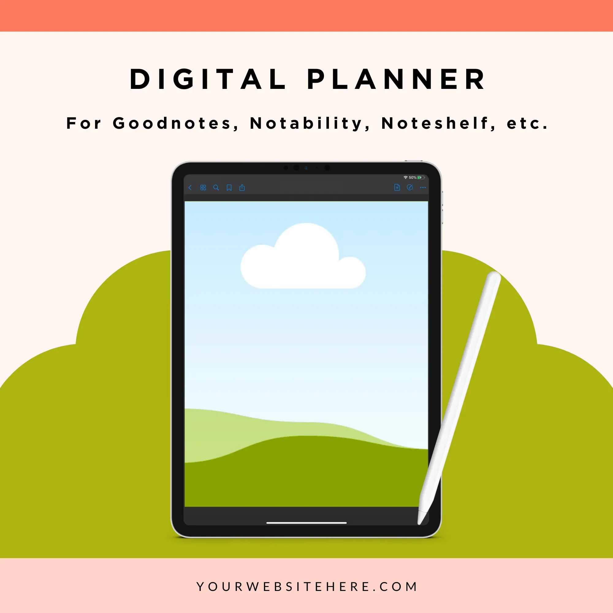 Commercial license permitting unlimited creation and sale of digital planners made from this template.