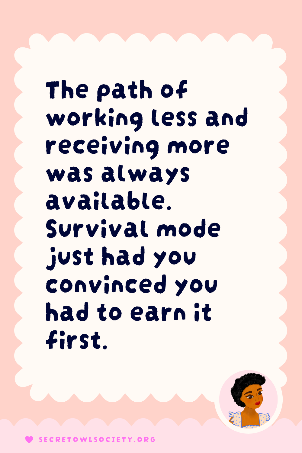 So it's not about paying your dues. It's about doing the inner work to realize the infinite reality of your own self-worth so you can finally see the options that were always in front of you: