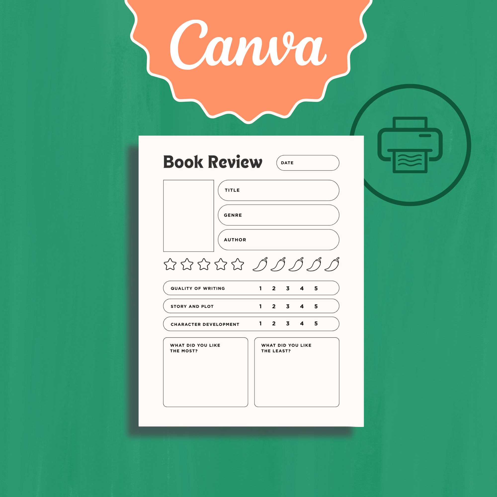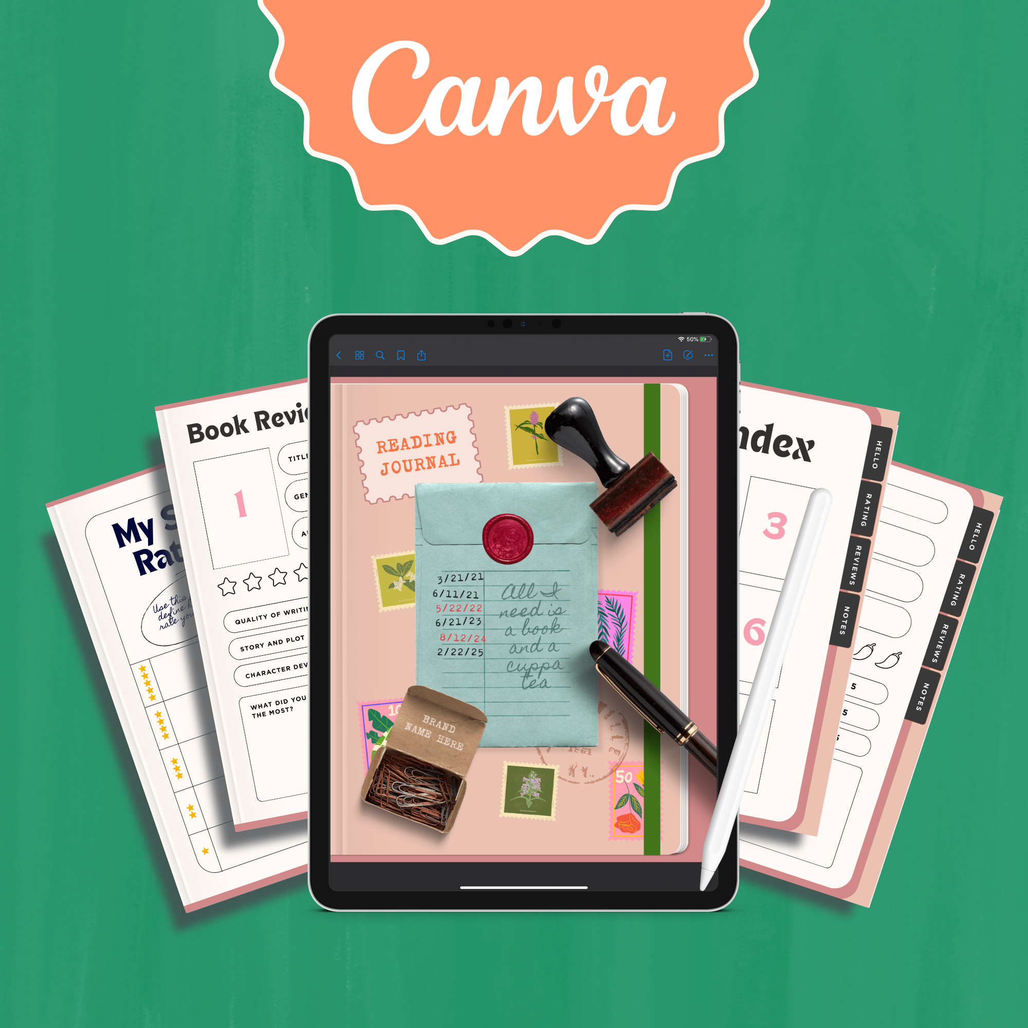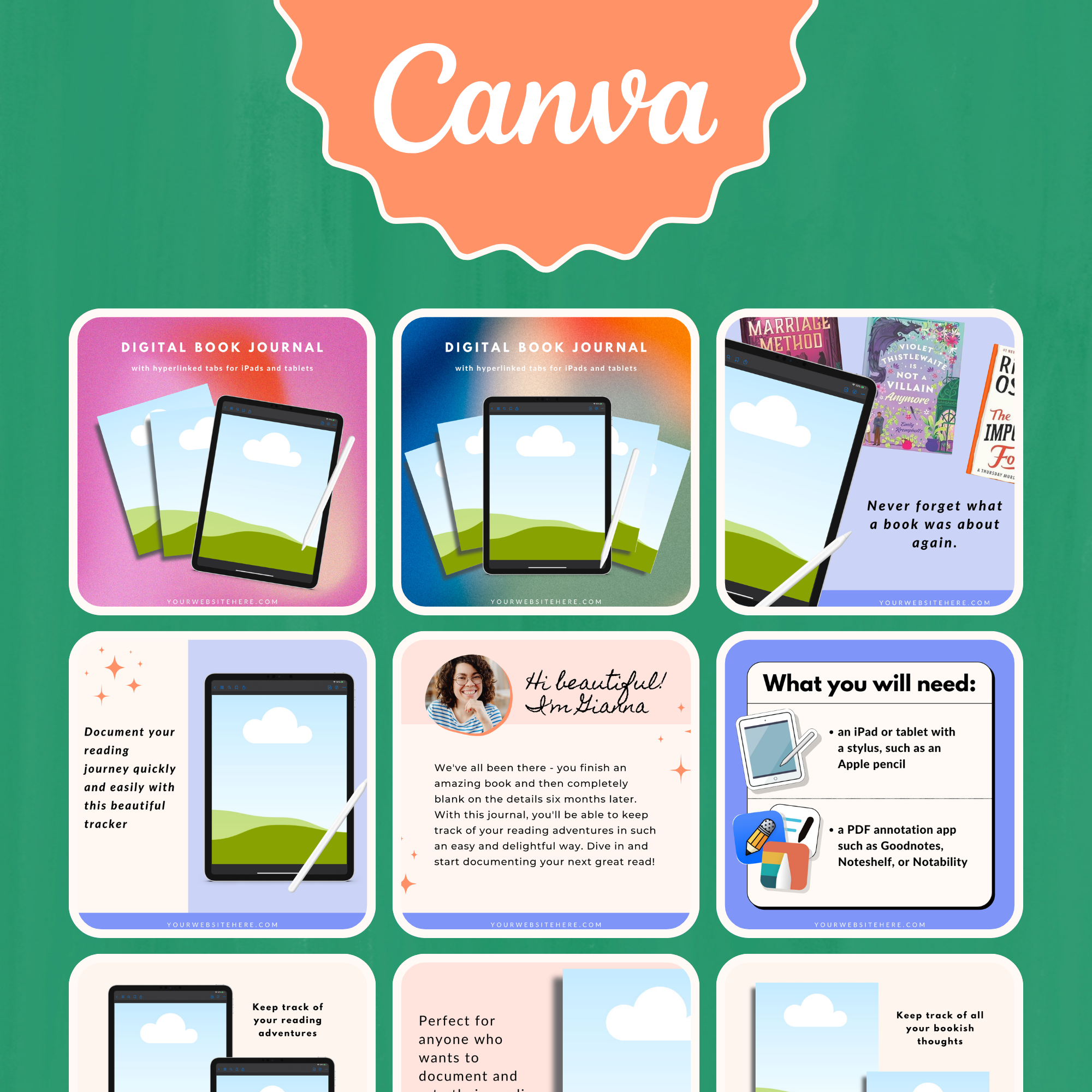 Canva template to make and sell unlimited digital reading journals.