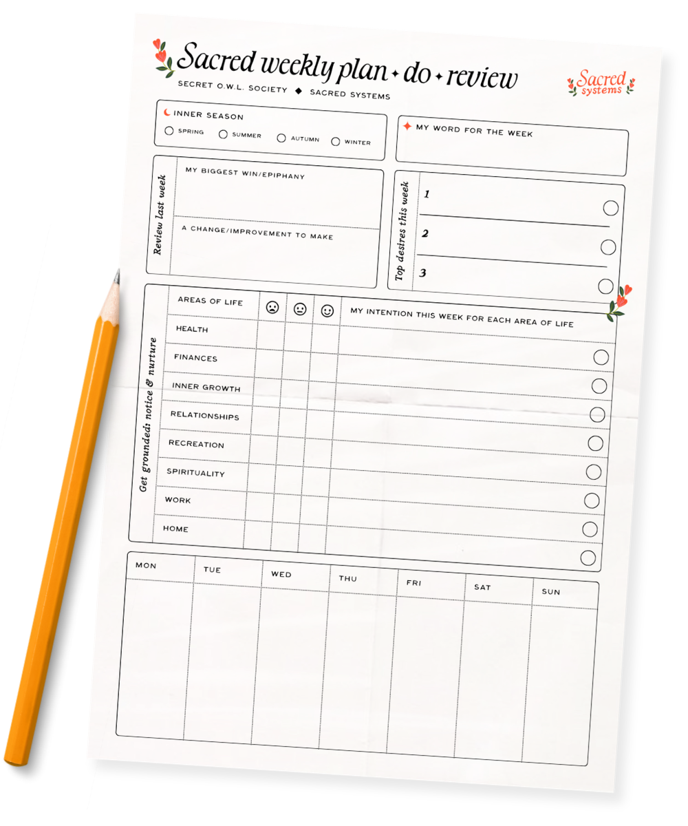 A sacred pause, once a week — to review what actually happened, set your intentions, and choose what deserves your energy in the week ahead. One page that brings your whole life into focus.
